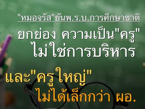 "หมอจรัส"ยันพ.ร.บ.การศึกษาชาติยกย่อง ความเป็น"ครู"ไม่ใช่การบริหาร และ"ครูใหญ่"ไม่ได้เล็กกว่าผอ.