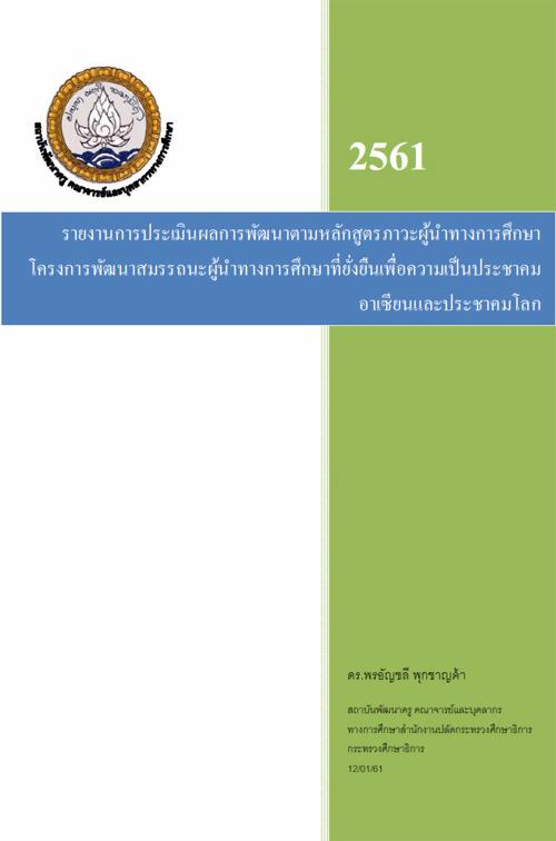 รายงานการประเมินผลการพัฒนาตามหลักสูตรภาวะผู้นำทางการศึกษาโครงการพัฒนาสมรรถนะผู้นำทางการศึกษาที่ยั่งยืนเพื่อความเป็นประชาคมอาเซียนและประชาคมโลก