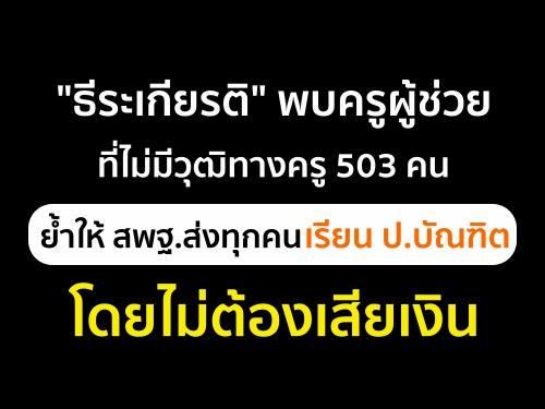 "ธีระเกียรติ" พบครูผู้ช่วยที่ไม่มีวุฒิทางครู 503 คน ย้ำให้ สพฐ.ส่งทุกคนเรียน ป.บัณฑิต โดยไม่ต้องเสียเงิน อ่านต่อคลิก[10 พ.ค. 2560](อ่าน 29,318 ครั้ง) (0.51%-314 ผู้โหวต) |