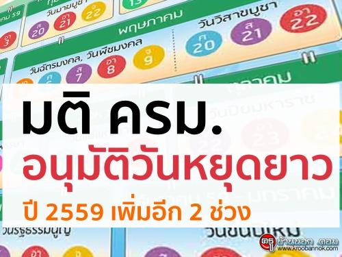ย้ำอีกครั้ง มติ ครม. อนุมัติวันหยุดยาวปี 2559 เพิ่มอีก 2 ช่วง