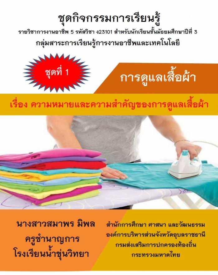 ชุดกิจกรรมการเรียนรู้ เรื่อง การดูแลเสื้อผ้า รายวิชาการงานอาชีพ 5 รหัสวิชา ง23101 ผลงานครูสมาพร มิพล