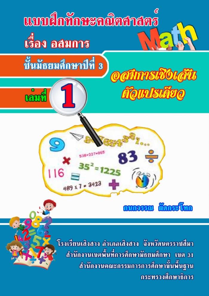 แบบฝึกทักษะคณิตศาสตร์เรื่อง อสมการ รายวิชาคณิตศาสตร์ 6 รหัสวิชา ค23102 ชั้นมัธยมศึกษาปีที่ 3 ผลงานครูกนกวรรณ ผัดกระโทก