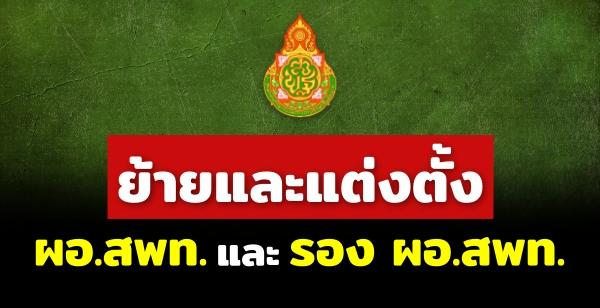 สพฐ.ย้ายและแต่งตั้งข้าราชการครูและบุคลากรทางการศึกษาให้ดำรงตำแหน่งผู้อำนวยการสำนักงานเขตพื้นที่การศึกษาและตำแหน่งรองผู้อำนวยการสำนักงานเขตพื้นที่การศึกษา