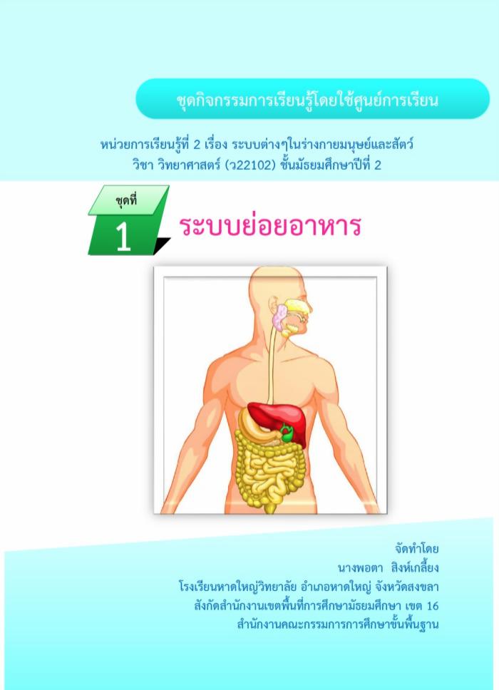 ชุดกิจกรรมการเรียนรู้โดยใช้ศูนย์การเรียน เรื่อง ระบบย่อยอาหาร ผลงานครูพอตา สิงห์เกลี้ยง