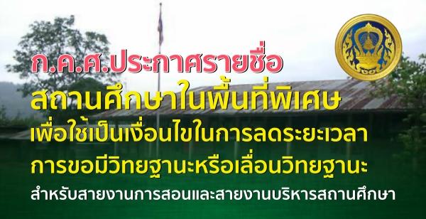 ก.ค.ศ.ประกาศรายชื่อสถานศึกษาในพื้นที่พิเศษเพื่อใช้เป็นเงื่อนไขในการลดระยะเวลาการขอมีวิทยฐานะหรือเลื่อนวิทยฐานะฯ