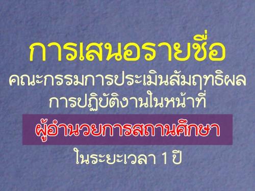 การเสนอรายชื่อคณะกรรมการประเมินสัมฤทธิผลการปฏิบัติงานในหน้าที่ผู้อำนวยการสถานศึกษาในระยะเวลา 1 ปี