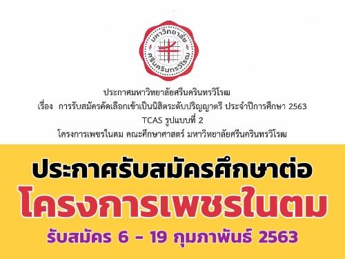 มศว ประกาศรับสมัครเข้าศึกษาต่อระดับ ป.ตรี โครงการเพชรในตม รับสมัครระหว่างวันที่ 6 - 19 กุมภาพันธ์ 2563