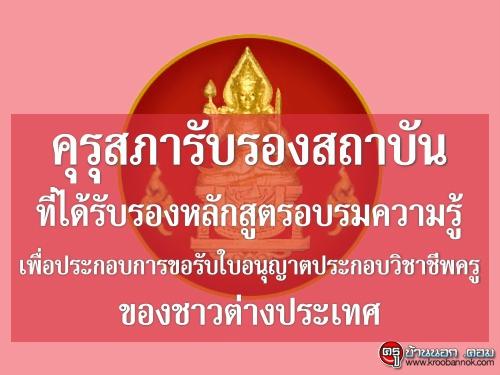 คุรุสภารับรองสถาบันที่ได้รับรองหลักสูตรอบรมความรู้เพื่อประกอบการขอรับใบอนุญาตประกอบวิชาชีพครูของชาวต่างประเทศ