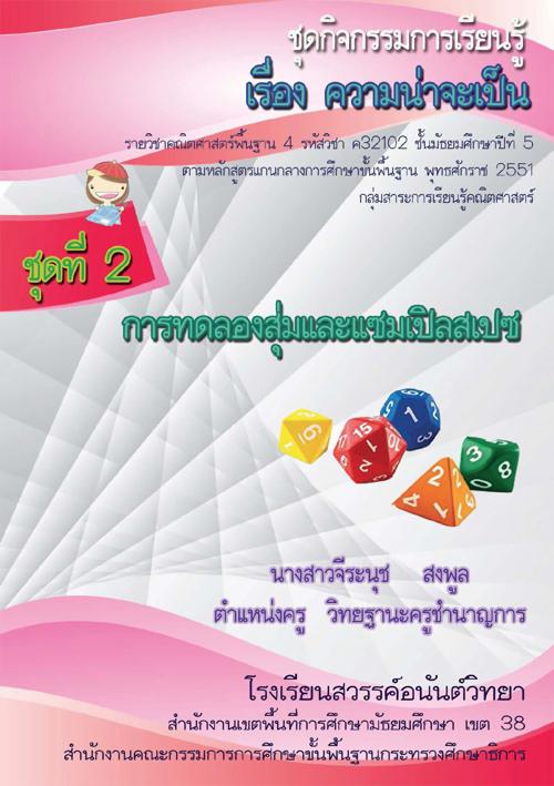 ชุดกิจกรรมการเรียนรู้ เรื่อง ความน่าจะเป็น รายวิชาคณิตศาสตร์พื้นฐาน 4 ชั้นมัธยมศึกษาปีที่ 5 ผลงานครูจีระนุช สงพูล