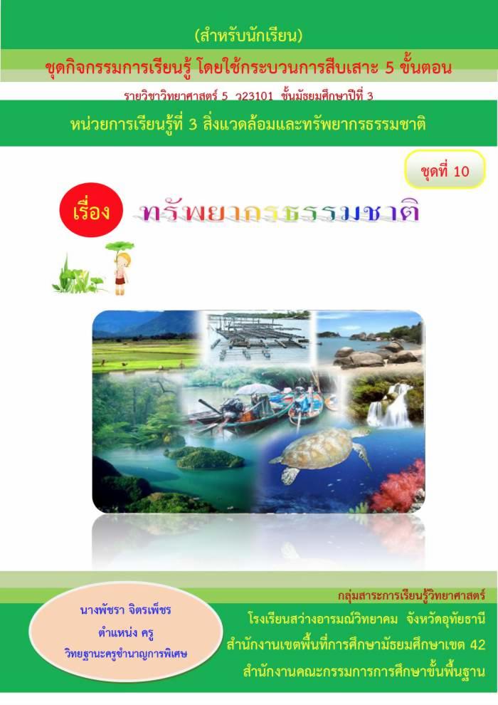 ชุดกิจกรรมการเรียนรู้ โดยใช้กระบวนการสืบเสาะ 5 ขั้นตอน รายวิชาวิทยาศาสตร์ 5 ม.3 ผลงานครูพัชรา จิตรเพ็ชร