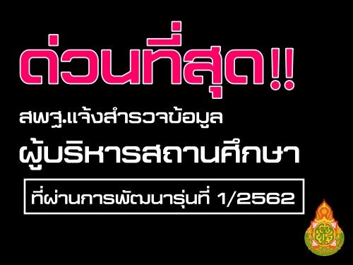 ด่วนที่สุด!! สพฐ.แจ้งสำรวจข้อมูลผู้บริหารสถานศึกษาที่ผ่านการพัฒนารุ่นที่ 1/2562