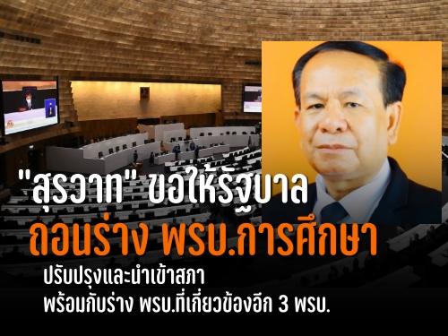 "สุรวาท" ขอให้รัฐบาลถอนร่าง พรบ.การศึกษา ปรับปรุงและนำเข้าสภาพร้อมกับร่าง พรบ.ที่เกี่ยวข้องอีก 3 พรบ.