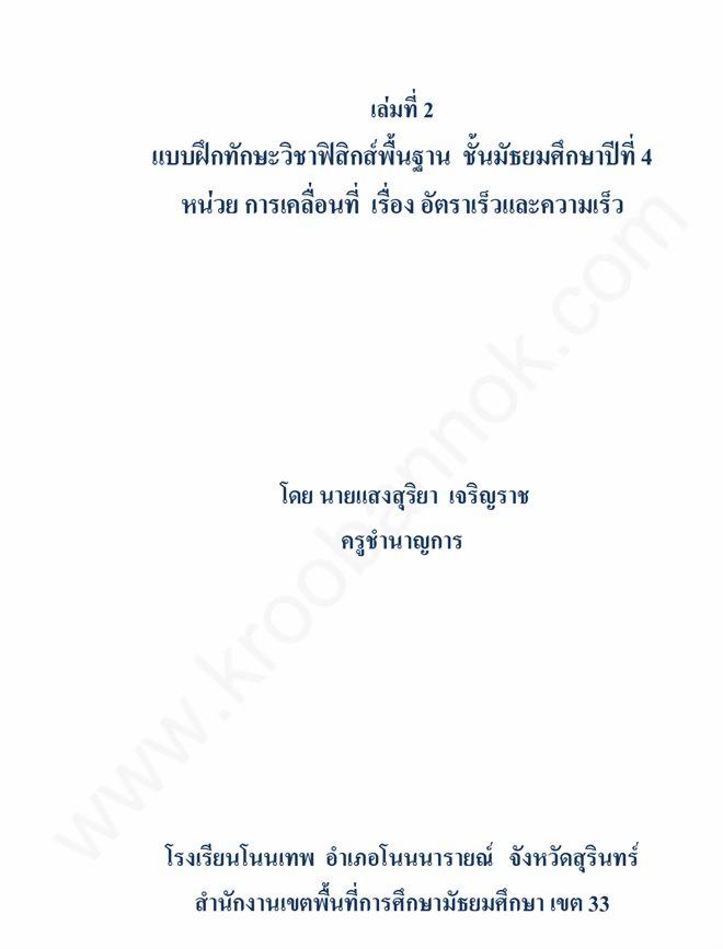 แบบฝึกทักษะวิชาฟิสิกส์พื้นฐาน ม.4 เรื่อง อัตราเร็วและความเร็ว ผลงานครูแสงสุริยา เจริญราช