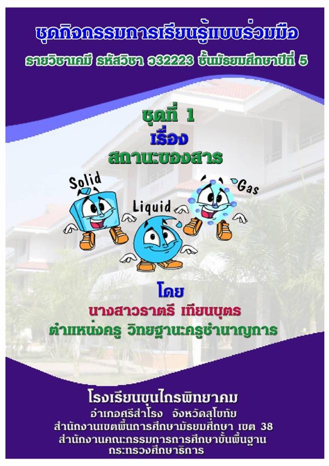 ชุดกิจกรรมการเรียนรู้แบบร่วมมือ วิชา เคมี ม.5 เรื่อง สถานะของสาร ผลงานครูราตรี เทียนบุตร