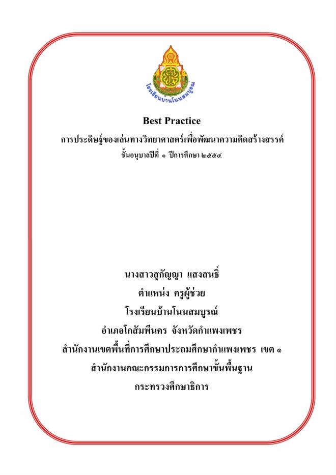Best Practiceการประดิษฐ์ของเล่นทางวิทยาศาสตร์เพื่อพัฒนาความคิดสร้างสรรค์ ผลงานครูสุกัญญา แสงสนธิ์