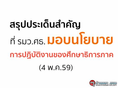 สรุปประเด็นสำคัญที่ รมว.ศธ. ประชุมมอบนโยบายการปฏิบัติงานของศึกษาธิการภาค (4 พ.ค.59)