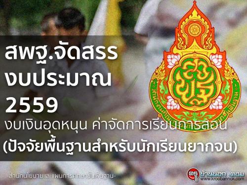 สพฐ.จัดสรรงบประมาณ 2559 งบเงินอุดหนุน ค่าจัดการเรียนการสอน (ปัจจัยพื้นฐานสำหรับนักเรียนยากจน)