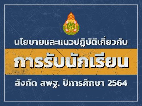 นโยบายและแนวปฏิบัติเกี่ยวกับการรับนักเรียน สังกัด สพฐ. ปีการศึกษา 2564
