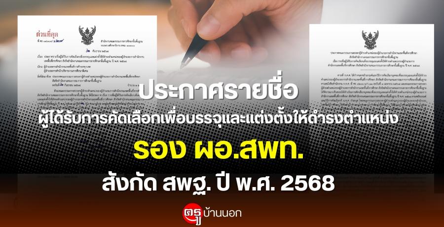 ประกาศรายชื่อผู้ได้รับการคัดเลือกเพื่อบรรจุและแต่งตั้งให้ดำรงตำแหน่ง รอง ผอ.สพท. สังกัด สพฐ. ปี พ.ศ. 2568