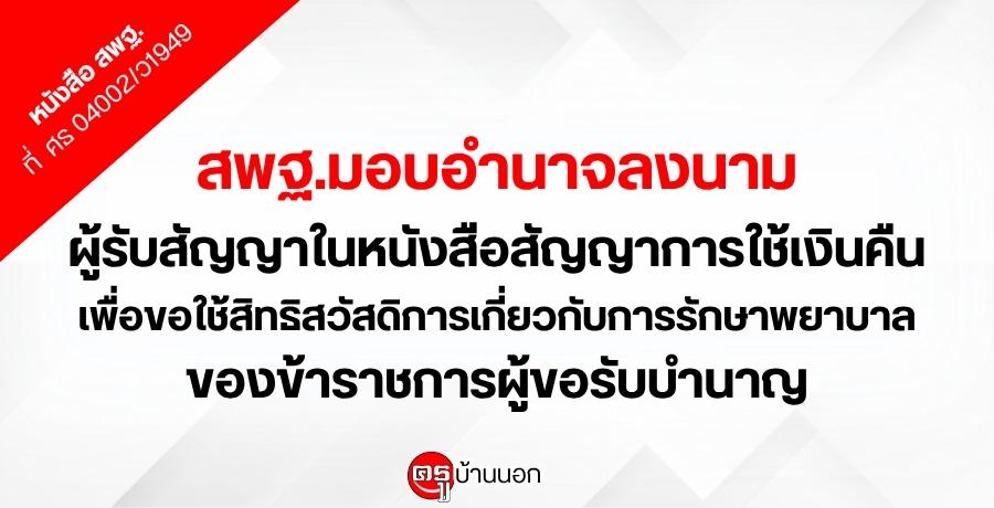 สพฐ.มอบอำนาจลงนามผู้รับสัญญาในหนังสือสัญญาการใช้เงินคืน เพื่อขอใช้สิทธิสวัสดิการเกี่ยวกับการรักษาพยาบาลของข้าราชการผู้ขอรับบำนาญ