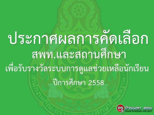 ประกาศผลการคัดเลือก สพท.และสถานศึกษาเพื่อรับรางวัลระบบการดูแลช่วยเหลือนักเรียน ปีการศึกษา 2558