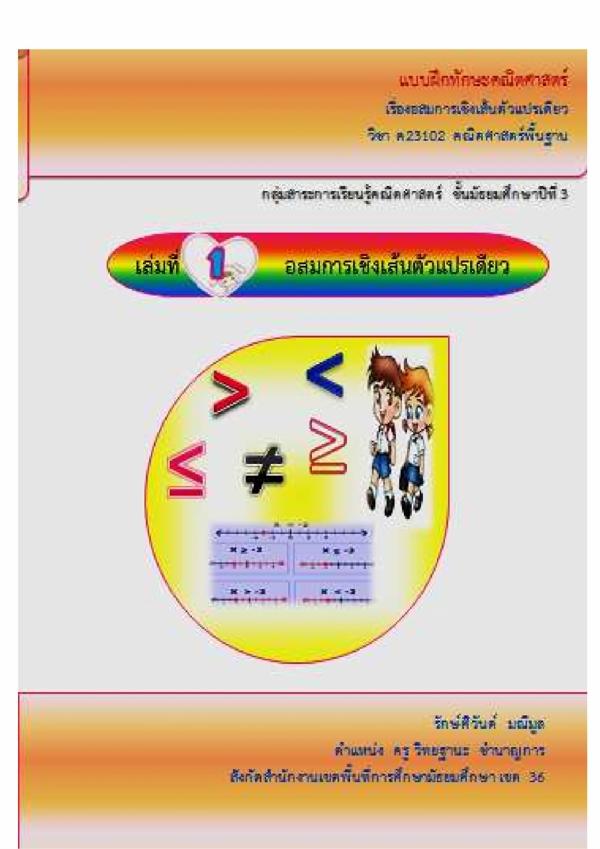 แบบฝึกทักษะคณิตศาสตร์ เรื่อง อสมการเชิงเส้นตัวแปรเดียว ผลงานครูรักษ์ศิวันต์ มณีมูล