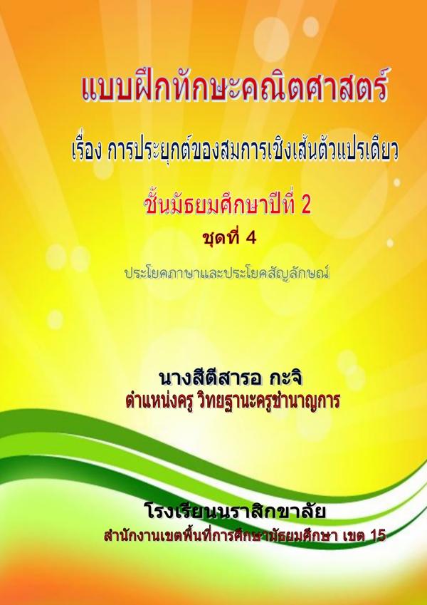 แบบฝึกทักษะคณิตศาสตร์ เรื่อง การประยุกต์ของสมการเชิงเส้นตัวแปรเดียว ผลงานครูสีตีสารอ กะจิ