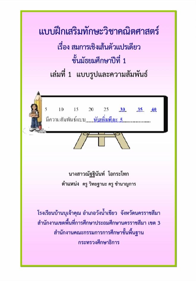 แบบฝึกเสริมทักษะวิชาคณิตศาสตร์ ม.1 เรื่องสมการเชิงเส้นตัวแปรเดียว ผลงานครูณัฐฐินันท์ โอกระโทก