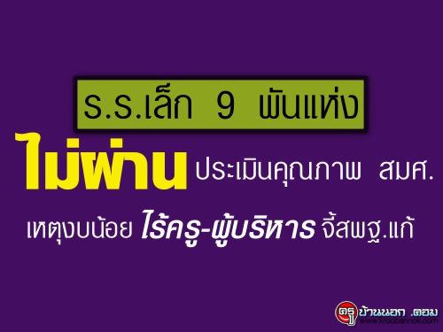ร.ร.เล็ก 9 พันแห่งไม่ผ่านประเมินคุณภาพ สมศ. เหตุงบน้อย ไร้ครู-ผู้บริหาร จี้สพฐ.แก้ อ่านต่อคลิก[26 พ.ย. 2558](อ่าน 8,179 ครั้ง) (0.50%-322 ผู้โหวต) |