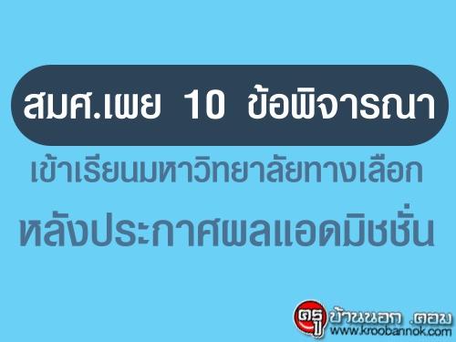 สมศ.เผย 10 ข้อพิจารณา เข้าเรียนมหาวิทยาลัยทางเลือก หลังประกาศผลแอดมิชชั่น อ่านต่อคลิก[9 มิ.ย. 2558](อ่าน 4,844 ครั้ง) (0.51%-315 ผู้โหวต) |
