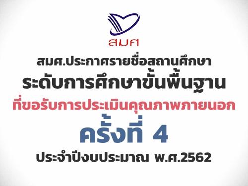 สมศ.ประกาศรายชื่อสถานศึกษาระดับการศึกษาขั้นพื้นฐานที่ขอรับการประเมินคุณภาพภายนอก ครั้งที่ 4 ประจำปีงบประมาณ พ.ศ.2562