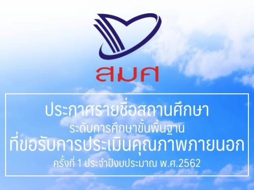 สมศ.ประกาศรายชื่อสถานศึกษาระดับการศึกษาขั้นพื้นฐานที่ขอรับการประเมินคุณภาพภายนอกครั้งที่ 1 ประจำปีงบประมาณ พ.ศ.2562