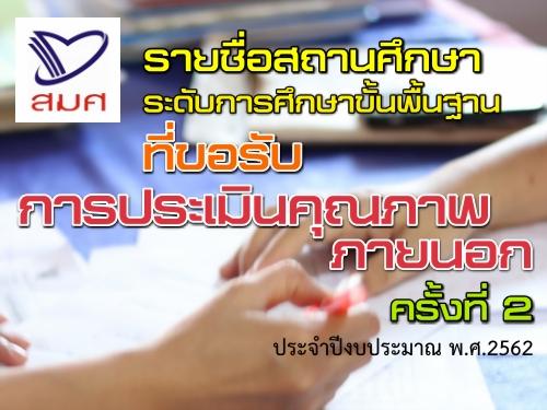 รายชื่อสถานศึกษาระดับการศึกษาขั้นพื้นฐานที่ขอรับการประเมินคุณภาพภายนอกครั้งที่ 2 ประจำปีงบประมาณ พ.ศ.2562