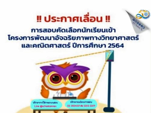 สสวท. ประกาศแจ้งเลื่อนการสอบคัดเลือกเข้าโครงการพัฒนาอัจฉริยภาพทางวิทยาศาสตร์และคณิตศาสตร์