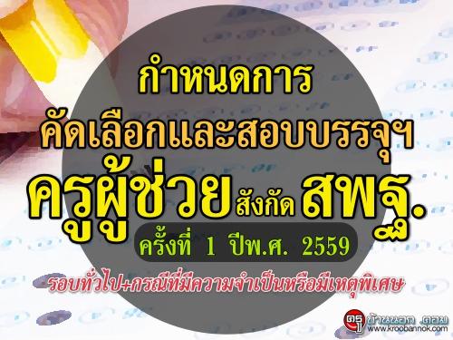 กำหนดการคัดเลือกและสอบบรรจุฯ ครูผู้ช่วย สพฐ. ครั้งที่ 1 ปีพ.ศ. 2559