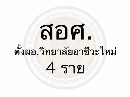 สอศ.ตั้งผอ.วิทยาลัยอาชีวะใหม่ 4 ราย  อ่านต่อคลิก[30 เม.ย. 2560](อ่าน 15,640 ครั้ง) (0.51%-314 ผู้โหวต) |