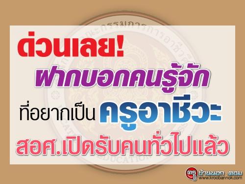 ด่วนเลย! ฝากบอกคนรู้จักที่อยากเป็นครูอาชีวะ สอศ.เปิดรับคนทั่วไปแล้ว อ่านต่อคลิก[14 ธ.ค. 2558](อ่าน 25,526 ครั้ง) (0.51%-316 ผู้โหวต) |