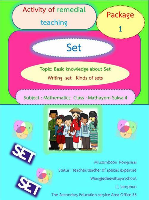 ชุดกิจกรรมสอนเสริม วิชาคณิตศาสตร์ เรื่อง เซต โดยใช้ภาษาอังกฤษ สำหรับนักเรียนชั้นมัธยมศึกษาปีที่ 4 ผลงานครูสมบุญ ผ่องศรีใส