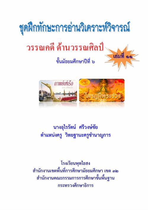 ชุดฝึกทักษะการอ่านวิเคราะห์วิจารณ์ กลุ่มสาระการเรียนรู้ภาษาไทย สำหรับนักเรียน ชั้นมัธยมศึกษาปีที่ 6 ผลงานครูอุไรรัตน์ ศรีวงษ์ชัย