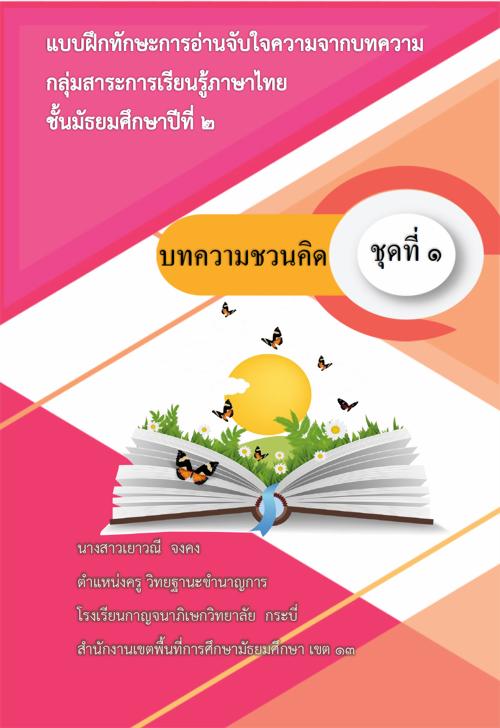 แบบฝึกทักษะ เรื่อง การอ่านจับใจความสำคัญสำหรับนักเรียนชั้นมัธยมศึกษาปีที่ 2 ชุดที่ 1 บทความชวนคิด ผลงานครูเยาวณี จงคง