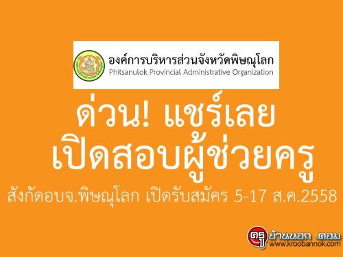 อบจ.พิษณุโลก รับสมัครผู้ช่วยครูจำนวน 13 อัตรา เปิดรับสมัคร 5 - 17 สิงหาคม 2558