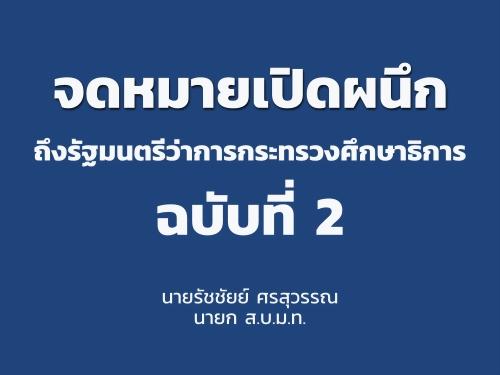 จดหมายเปิดผนึกถึงรัฐมนตรีว่าการกระทรวงศึกษาธิการ ฉบับท่ี 2 : นายรัชชัยย์ ศรสุวรรณ นายก ส.บ.ม.ท.