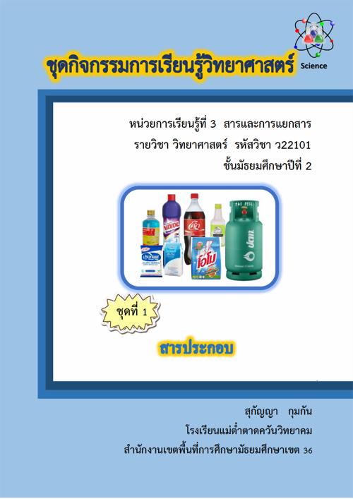 ชุดกิจกรรมการเรียนรู้วิทยาศาสตร์ หน่วยการเรียนรู้ที่ 3 สารและการแยกสาร รายวิชาวิทยาศาสตร์ ม.2 ผลงานครูสุกัญญา กุมกัน