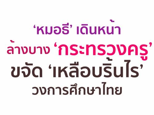 หมอธี เดินหน้าล้างบาง กระทรวงครู ขจัด เหลือบริ้นไร วงการศึกษาไทย อ่านต่อคลิก(อ่าน 12,615 ครั้ง) (0.51%-314 ผู้โหวต) |