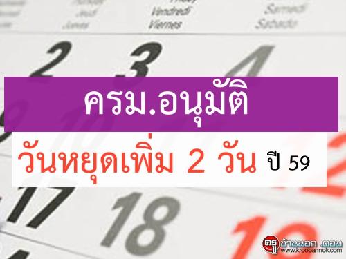 ครม.อนุมัติวันหยุดเพิ่ม 2 วันในปี 59 กระตุ้นเศรษฐกิจ-ท่องเที่ยว