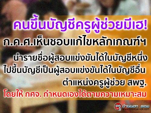 คนขึ้นบัญชีครูผู้ช่วยมีเฮ! ก.ค.ศ.เห็นชอบแก้ไขหลักเกณฑ์ฯ นำรายชื่อผู้สอบแข่งขันได้ในบัญชีหนึ่งไปขึ้นบัญชีเป็นผู้สอบแข่งขันได้ในบัญชีอื่น ตำแหน่งครูผู้ช