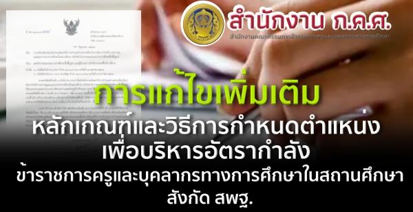 การแก้ไขเพิ่มเติมหลักเกณฑ์และวิธีการกำหนดตำแหน่งเพื่อบริหารอัตรากำลังข้าราชการครูและบุคลากรทางการศึกษาในสถานศึกษา สังกัด สพฐ.