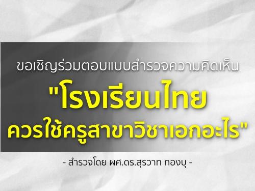 ขอเชิญร่วมตอบแบบสำรวจความคิดเห็น "โรงเรียนไทย ควรใช้ครูสาขาวิชาเอกอะไร"
