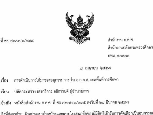 การดำเนินการได้มาของอนุกรรมการ ใน อ.ก.ค.ศ. เขตพื้นที่การศึกษา