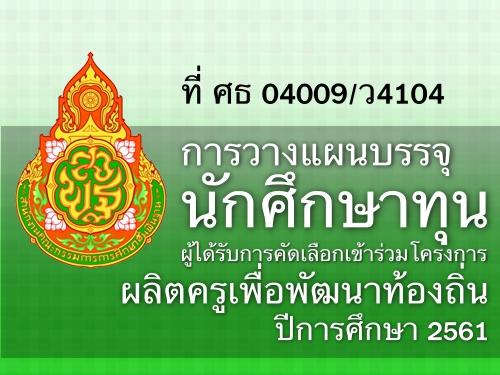 การวางแผนบรรจุนักศึกษาทุนผู้ได้รับการคัดเลือกเข้าร่วมโครงการผลิตครูเพื่อพัฒนาท้องถิ่น ปีการศึกษา 2561